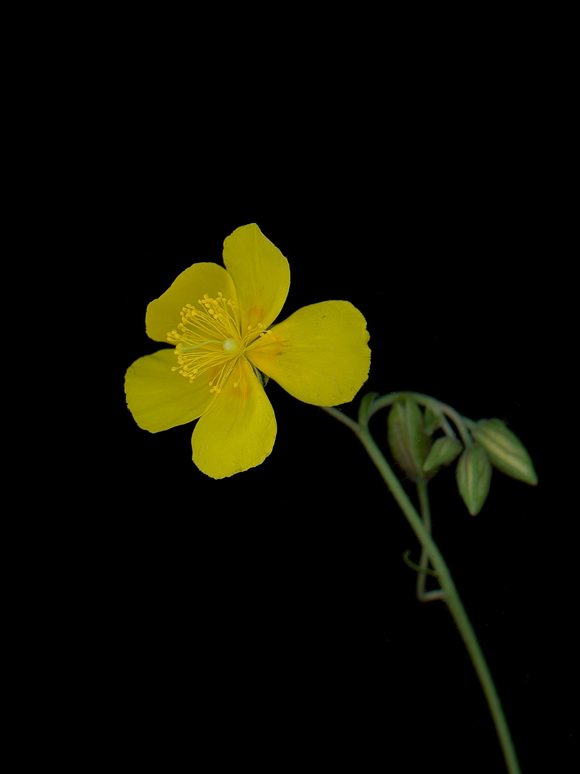 Helianthemum nummularium, commonly known as common rock-rose, is a low-growing perennial wildflower native to Europe. It is distinguished by its bright yellow, cup-shaped flowers that open in sunlight, and its small, rounded, evergreen leaves that form dense mats. Unlike many wildflowers, it thrives on dry, calcareous soils, often in grasslands, rocky slopes, and sunny meadows. Its flowers provide an important nectar source for bees and butterflies during the summer months, while its mat-forming growth helps prevent soil erosion, making Helianthemum nummularium a key species in supporting pollinators and maintaining the structure of dry grassland ecosystems.