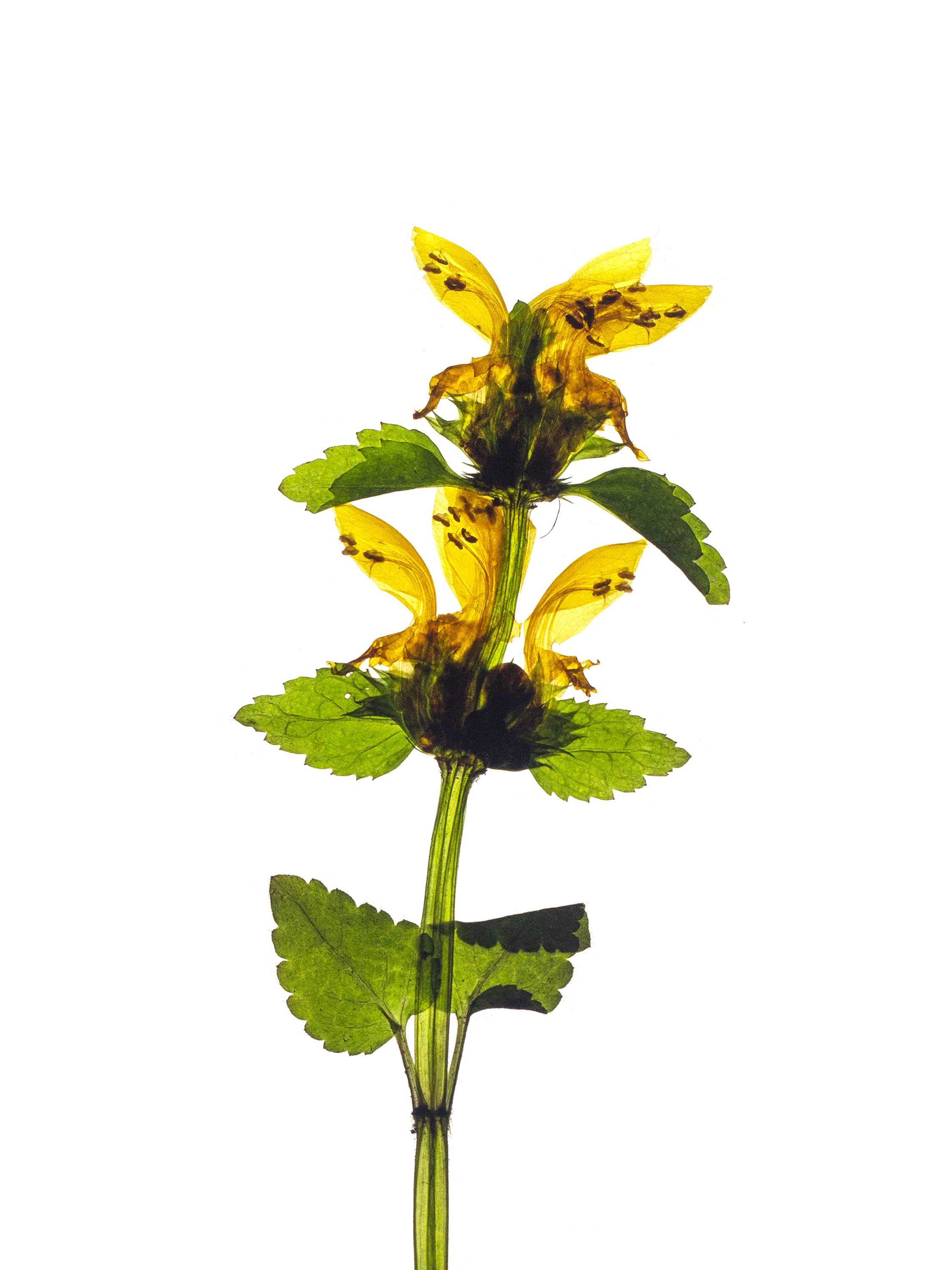 Lamium galeobdolon, commonly known as yellow archangel, is a perennial wildflower native to Europe. It is recognized by its nettle-like leaves—often marked with silvery patterns—and its distinctive yellow, hooded flowers arranged in whorls along the stem. The name “galeobdolon” comes from Greek for “smelling like a weasel,” referring to the plant’s sharp scent when crushed. Unlike true nettles, it bears no stinging hairs and is adapted to deep shade, making it one of the characteristic bloomers of ancient, undisturbed woodlands. Its early flowers provide an important nectar source for bumblebees emerging in spring.